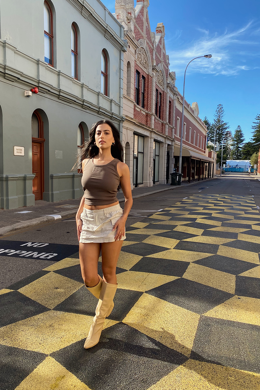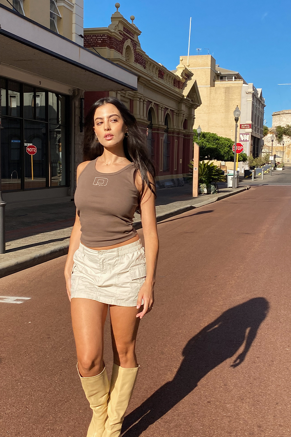 This basics drop is inspired by our designers Portuguese heritage. She decided to utilise the Portuguese word "roupas" which translates too clothing/garments. This tank hugs the body in the perfect way and can be paired with any bottoms. This basic would be perfect as a staple piece in your wardrobe.