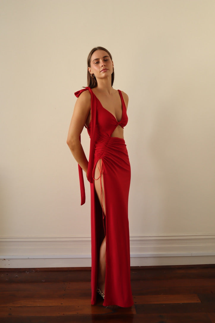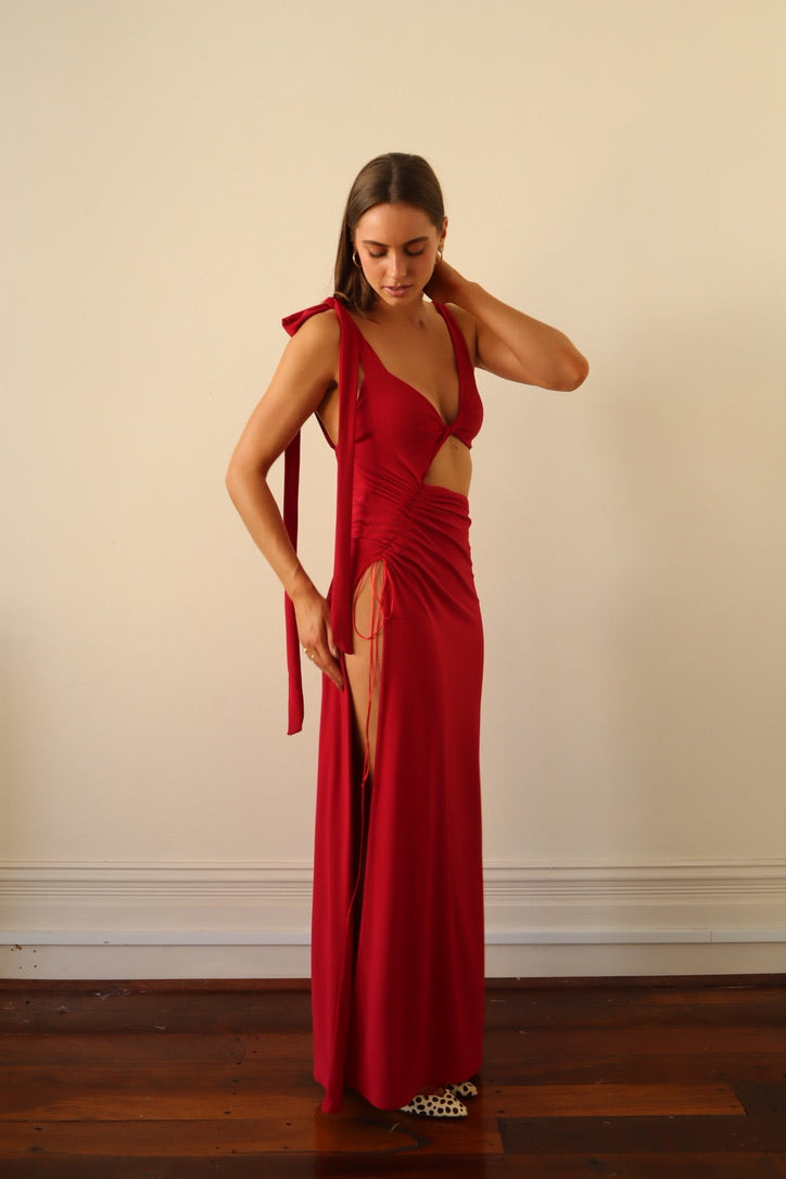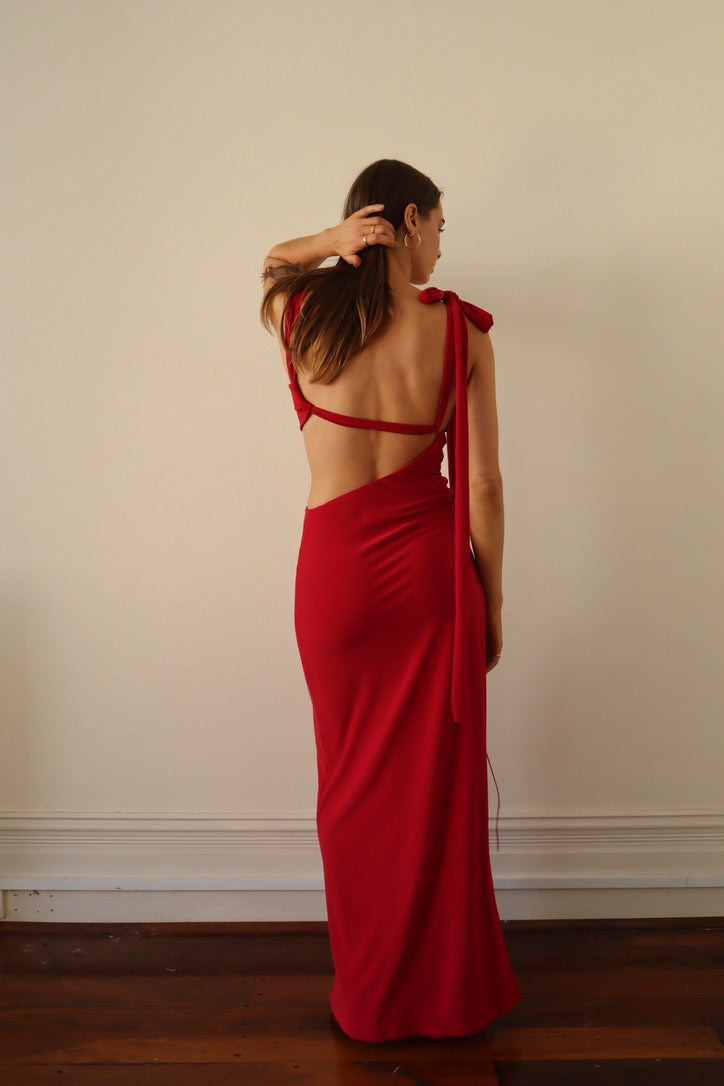 Made from the softest jersey fabric, the Martinique drapes beautifully over the body, featuring adjustable shoulder ties for the perfect fit. A chic twist detail at the bust adds a touch of effortless sophistication, while the high drawstring slit lets you control just how daring—or subtle—you want the look to be. With a partially backless design, this dress is the ultimate statement piece for any special event you have on your calendar