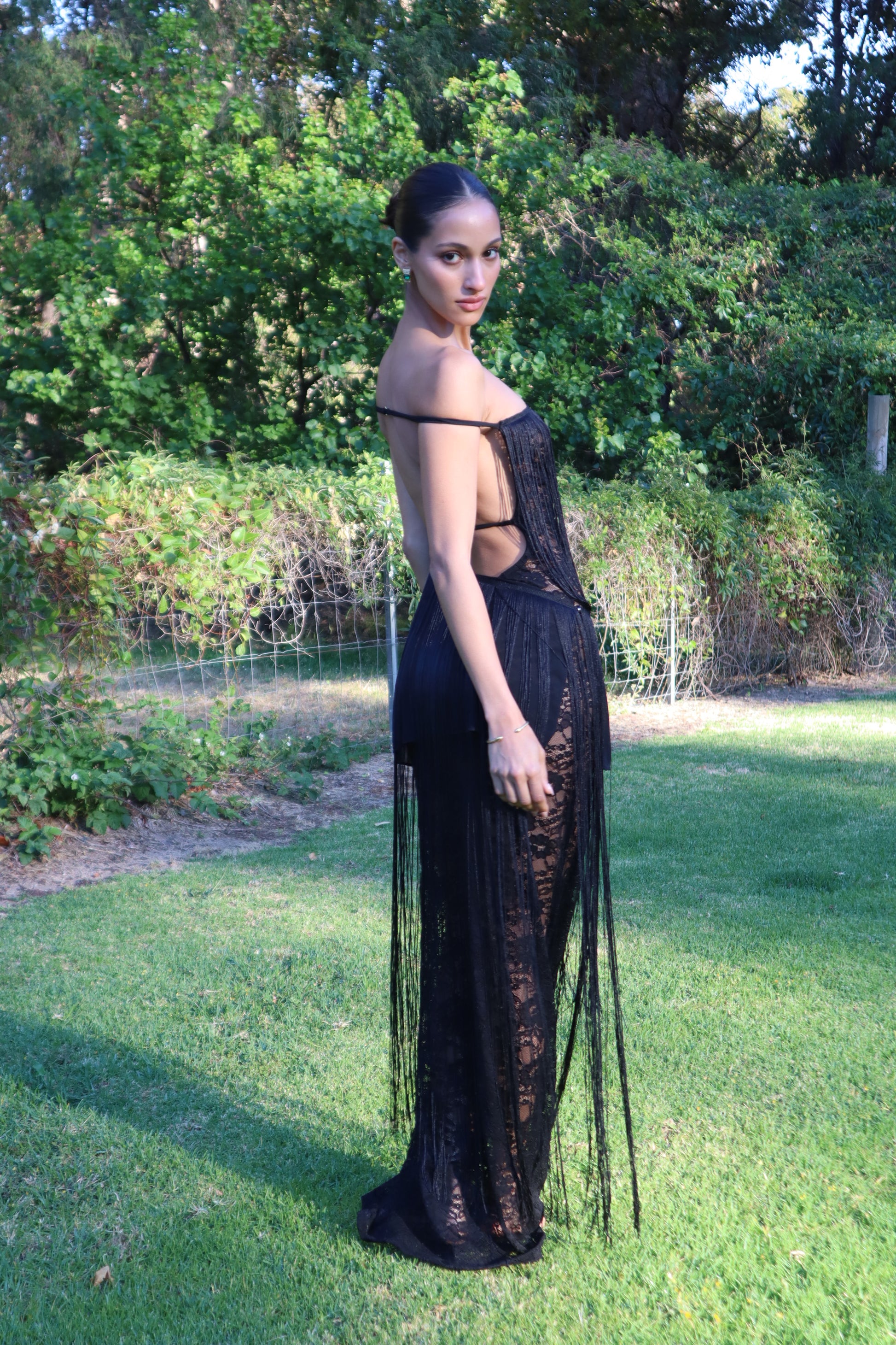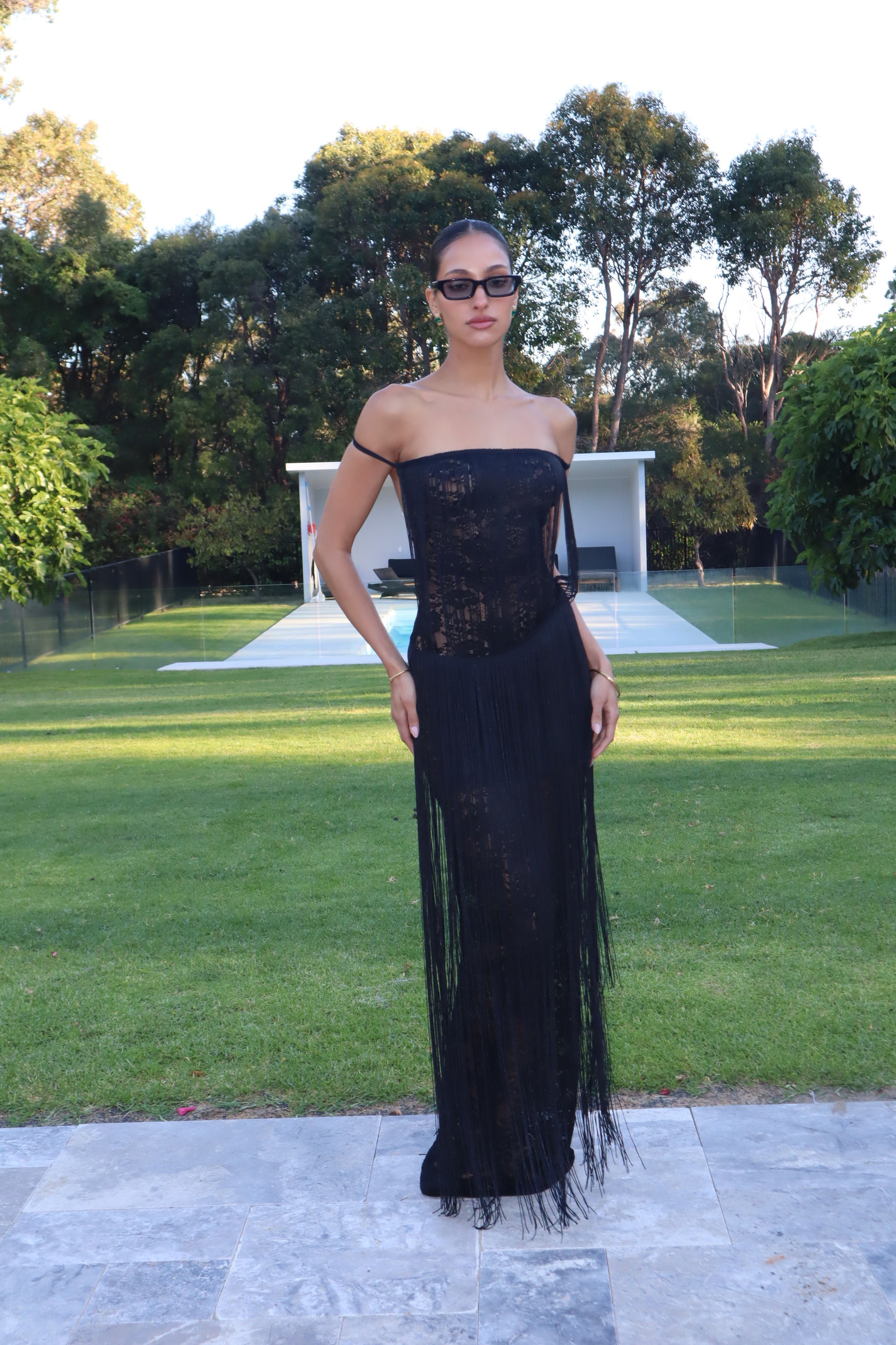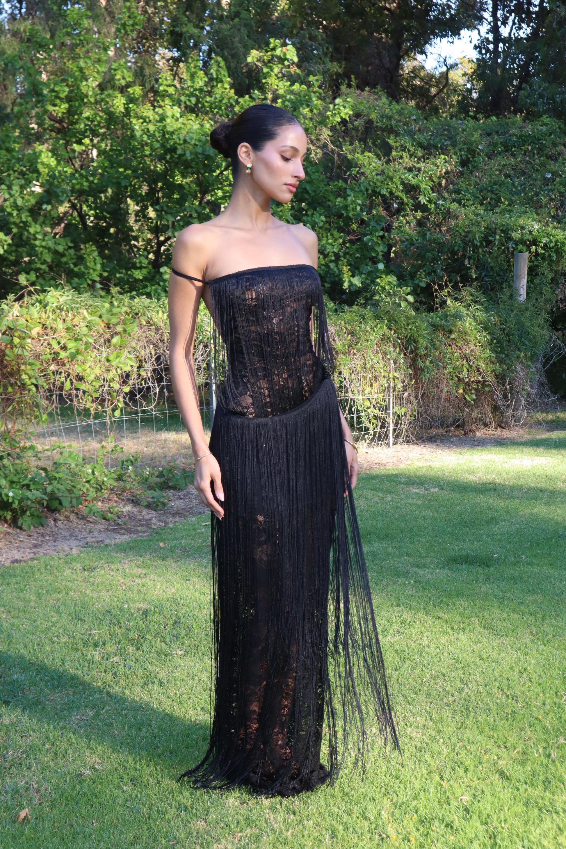 Introducing the PETUNIA — a fresh and distinctive style from Deconduarte as part of the Sol Bloom collection. This layered piece features a sheer lace bodice with fringe details that provide subtle coverage, creating a delicate look. The design includes two clasps at the shoulder and waist to cinch in the fit, with easy access via a side press-stud. The bottom fringe layer sits over a mesh skirt to ensure coverage, while sheer detailing around the bust adds an elegant touch, making this piece both bold and feminine.