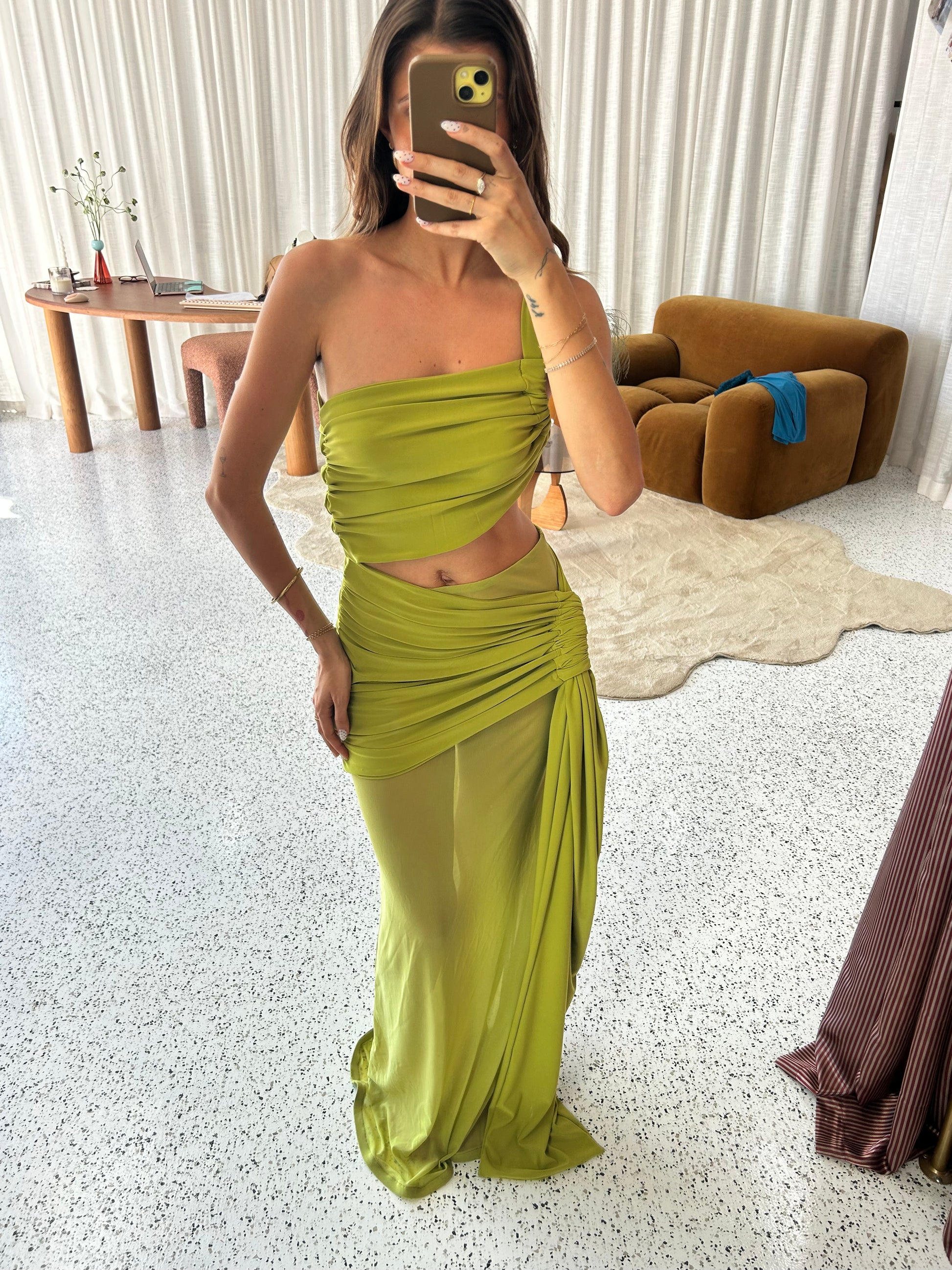 - Sheer maxi skirt