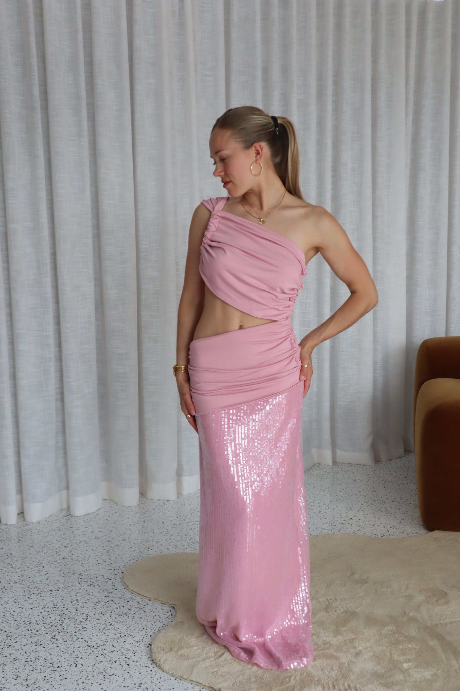 - Stretchy top and sequin skirt