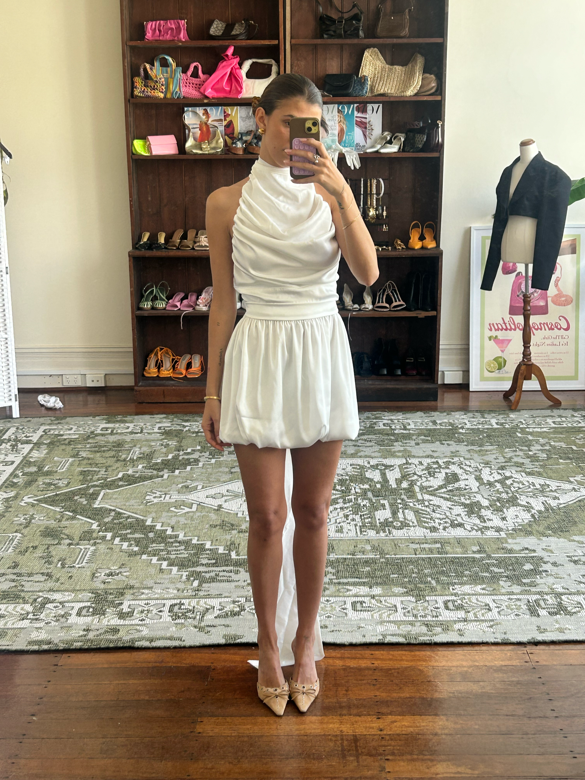 The set features a chic high-neck, backless top with adjustable thick ties for a personalised fit. The waist offers flexibility, allowing you to adjust between a snug or relaxed fit. The Dubrov skirt is an elasticated waist bubble skirt making it super comfortable piece! The top and skirt make for a gorgeous mini dress illusion however they would be perfect worn separately with other pieces in your wardrobe.