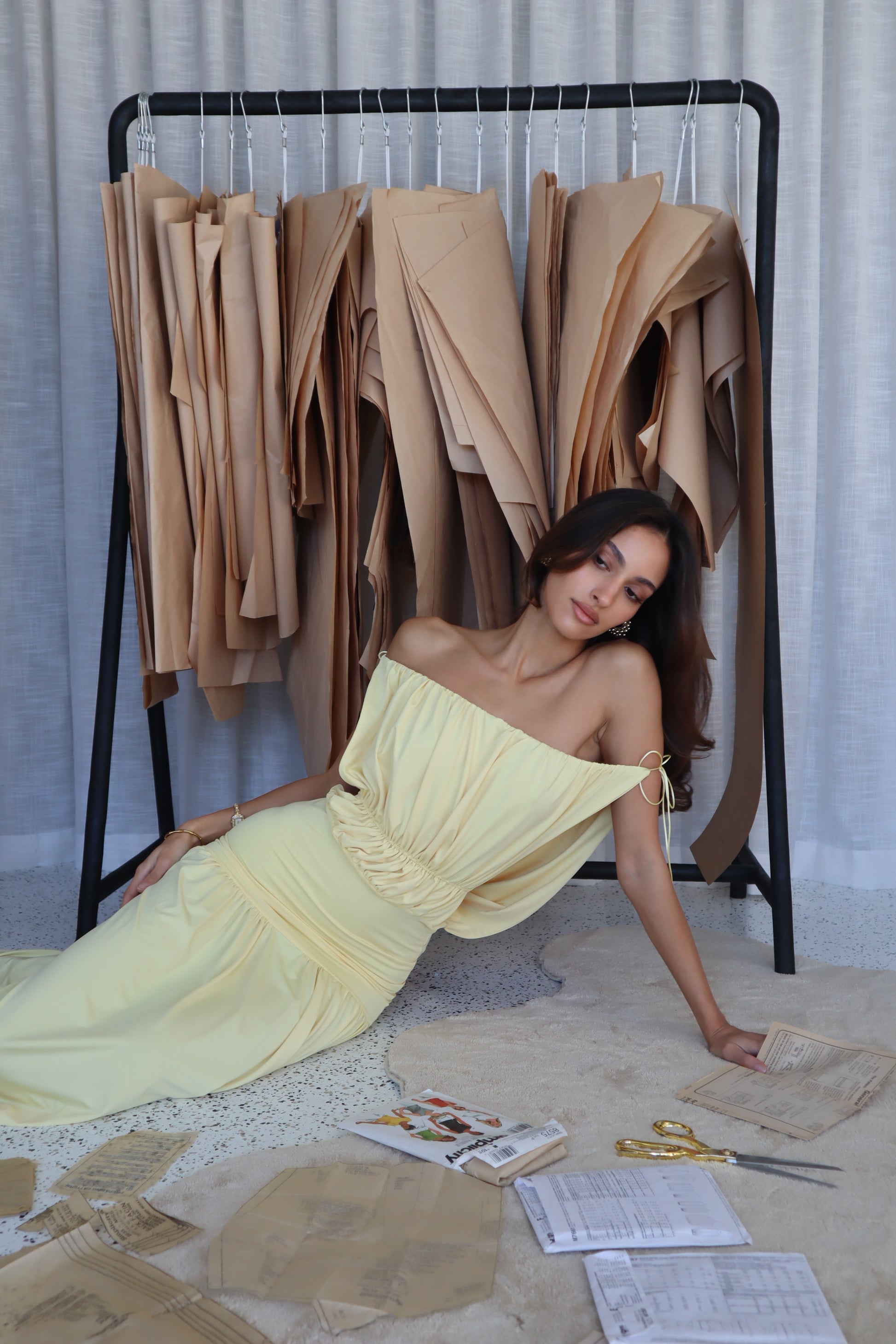Introducing the Solana, part of our newest Spring/Summer 2025 Patterned Chaos collection. This dreamy, ethereal style brings a fresh silhouette to our range. The soft jersey drapes beautifully over the body, with a relaxed, loose-fitting top that cinches in at the waist with a hidden rat-tail cord for shape and definition.