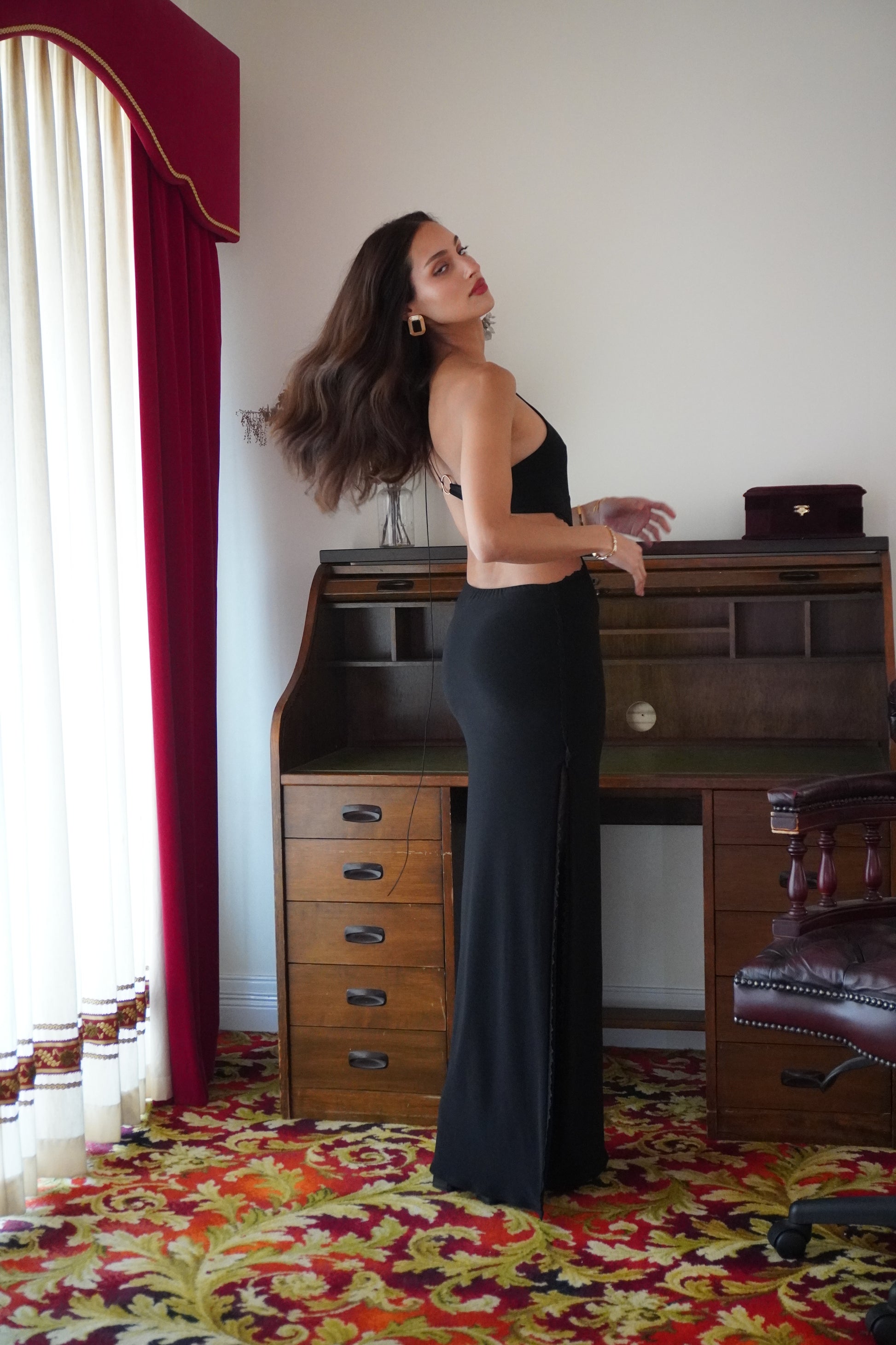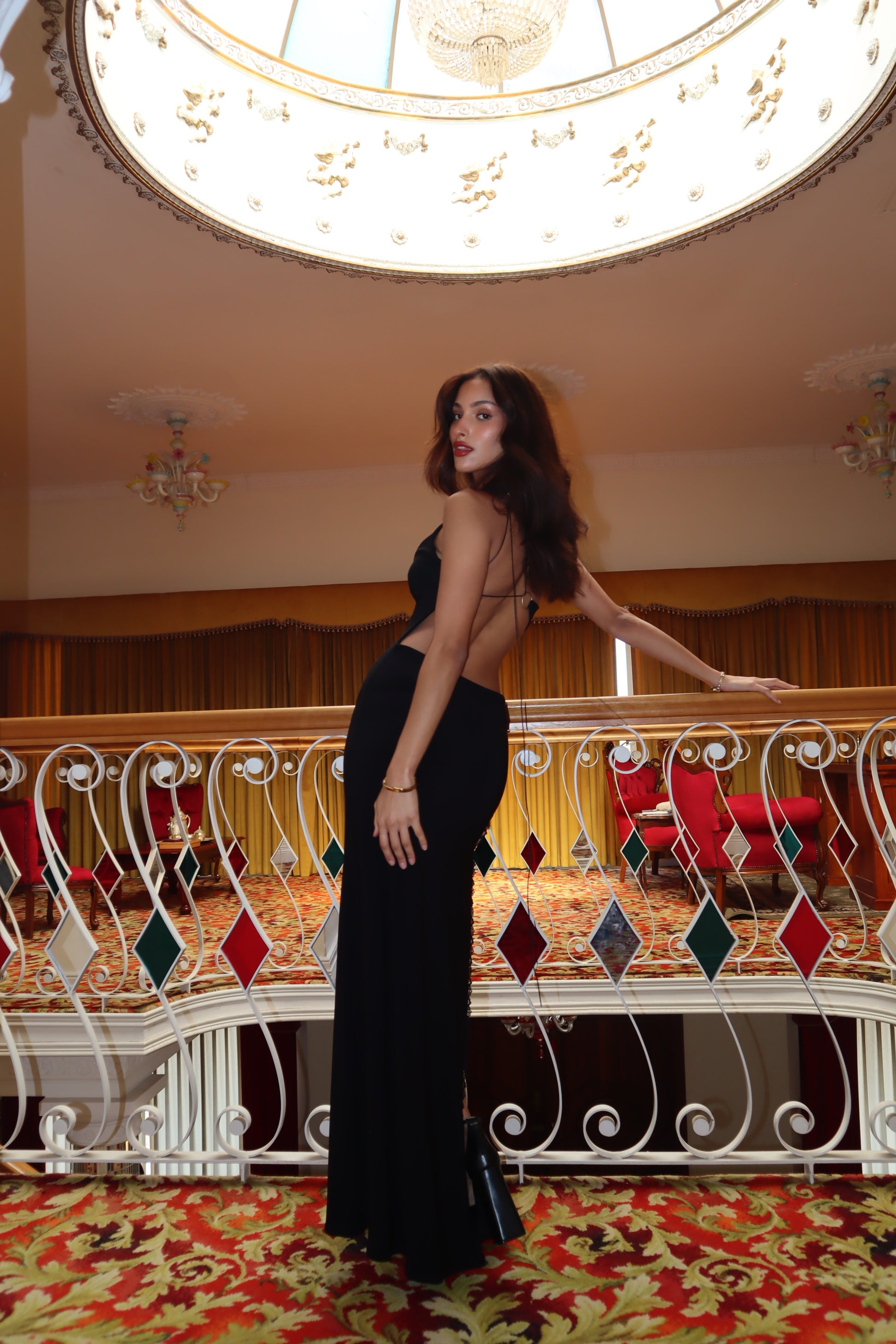 The Tegan Maxi Gown from our Romantica Volume 1 collection epitomizes elegance and sophistication, making it a versatile choice for various occasions. Featuring delicate lace accents along its edges and a fully backless design, this gown exudes both a timeless charm and a touch of romantic allure.